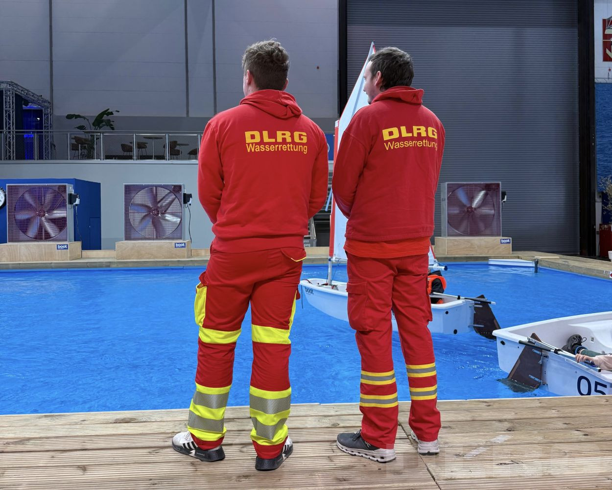 Unterstützt wurde der Messeauftritt durch Mitglieder der DLRG-Ortsgruppe Moers-Rheinkamp, die sowohl am Messestand als auch am Ausprobierpool im Einsatz waren. Während am Messestand Fachgespräche und Informationsangebote zu verschiedenen Themen der Wasserrettung stattfanden, lag der Fokus am Pool auf der praktischen Absicherung von Wassersportaktivitäten.